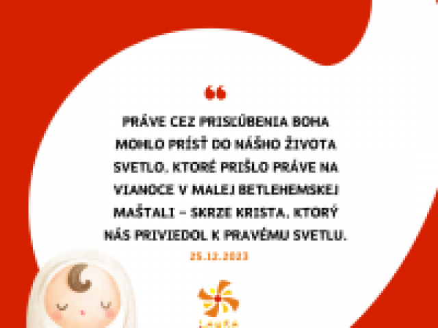 Už na začiatku stvorenia Boh povedal Buď svetlo! Už tento príkaz svedčí o moci jeho rozhodnutia a jeho slov a že jeho rozhodnutia nie sú len plané reči. A to, že nám prisľúbil spasiteľa, nebol len planý poplach. Jeho slová a prisľúbenia majú moc a váhu a budú platiť za akýchkoľvek okolností. Práve cez prisľúbenie Boha mohlo prísť do nášho života svetlo, ktoré prišlo práve na Vianoce v malej Betlehemskej maštali – skrze Krista, ktorý nás priviedol k pravému svetlu. Prišiel k svojim vlastným ako človek k človeku a oni ho odmietli prijať už ako malé dieťa; už ako dieťa sa narodil v malej maštali, kde boli iba zvieratka. Prišiel z vôle Otca, ktorý chce, aby sme sa skrze Krista vrátili k nemu ako pravému zdroju svetla. Každý rok po Slovensku putuje aj plamienok Betlehemského svetla, ktoré prichádza priamo z Betlehema, a prináša radosť do našich príbytkov. Tieto sviatky i ja sa radujem a z úprimného srdca vám vinšujem: Aby bol Kristus Pán vašim tešiteľom, vaším dobrým radcom a dobrým priateľom. Do nového roka vám vinšujem to, však viete čo, aby ste sa dostali tam, však viete kam, aby ste sa radovali s tým, však viete s kým, aby ste mali mnoho toho, však vy dobre viete čoho :)