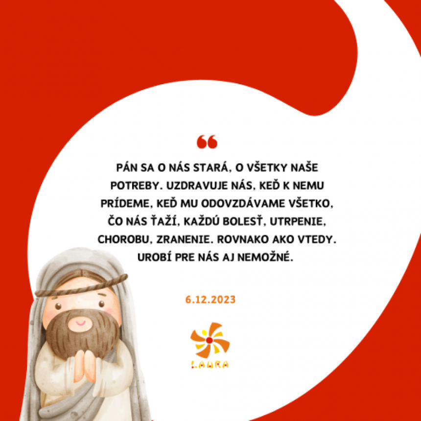 Aj ty si súčasťou zástupu, ktorý ide za Ježišom. Pán sa o nás stará, o všetky naše potreby. Uzdravuje nás, keď k nemu prídeme, keď mu odovzdávame všetko, čo nás ťaží, každú bolesť, utrpenie, chorobu, zranenie. Rovnako ako vtedy. Urobí pre nás aj nemožné. Ale odovzdávam Bohu naozaj všetko, čo ma ťaží a s čím bojujem? Kladiem mu to k nohám, aby ma mohol uzdraviť? Sú oblasti, do ktorých nechcem Ježiša pustiť, s ktorými si chcem poradiť ja sám? Pamätám na to, že Bohu patrí vďaka, chvála a veleba za všetko, čo koná v mojom živote? Aj keď niekedy nevidíš priame uzdravenie tela ako zástupy, pamätaj na to, že Ježiš sa dotýka toho, čo potrebuje uzdravenie – teda i duše, srdca. A nedeje sa to naraz, zväčša postupne. Buď preto vďačný a vytrvalý v modlitbe. Ježiš to zariadi, ale možno inak, ako očakávaš. Podobne aj učeníci nečakali, že možno nasýtiť zástupy na púšti.