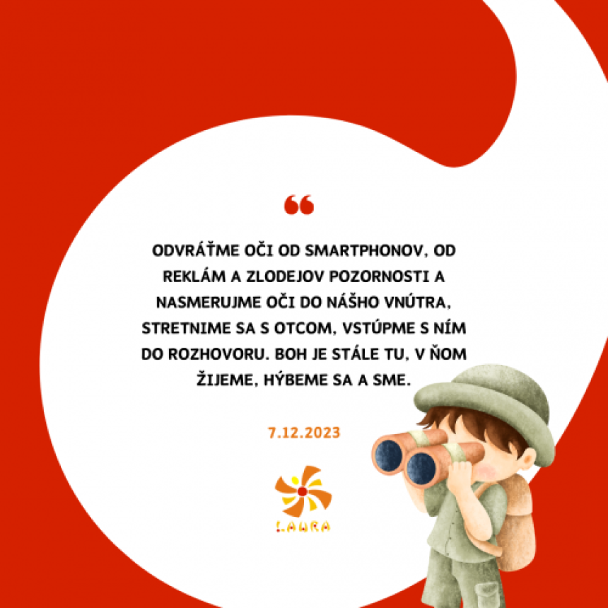 Ak chceme Otcovu vôľu plniť, musíme Otcovu vôľu poznať. Otcovu vôľu môžeme spoznávať v Božom slove, ktoré je pravdivé a živé aj dnes, aj pre nás. Na inom mieste v evanjeliu podľa Matúša Boh Otec hovorí: „Toto je môj milovaný Syn, v ktorom mám zaľúbenie, počúvajte ho.” (Mt 17,5) Vôľou Ježiša je plniť vôľu Otca a Otcova vôľa je, aby sme počúvali Syna. Odvráťme oči od smartphonov, od reklám a zlodejov pozornosti a nasmerujme oči do nášho vnútra, stretnime sa s Otcom, vstúpme s ním do rozhovoru. Boh je stále tu, v ňom žijeme, hýbeme sa a sme. Je pripravený objať nás, sme jeho milované deti, ktoré patria do nebeského kráľovstva. Rozhodnime sa byť jeho súčasťou. Poznávať Ježiša a Otcovu vôľu môžeme každodenným čítaním Svätého Písma, urobme si predsavzatie venovať mu viac času a pozornosti ako doteraz.