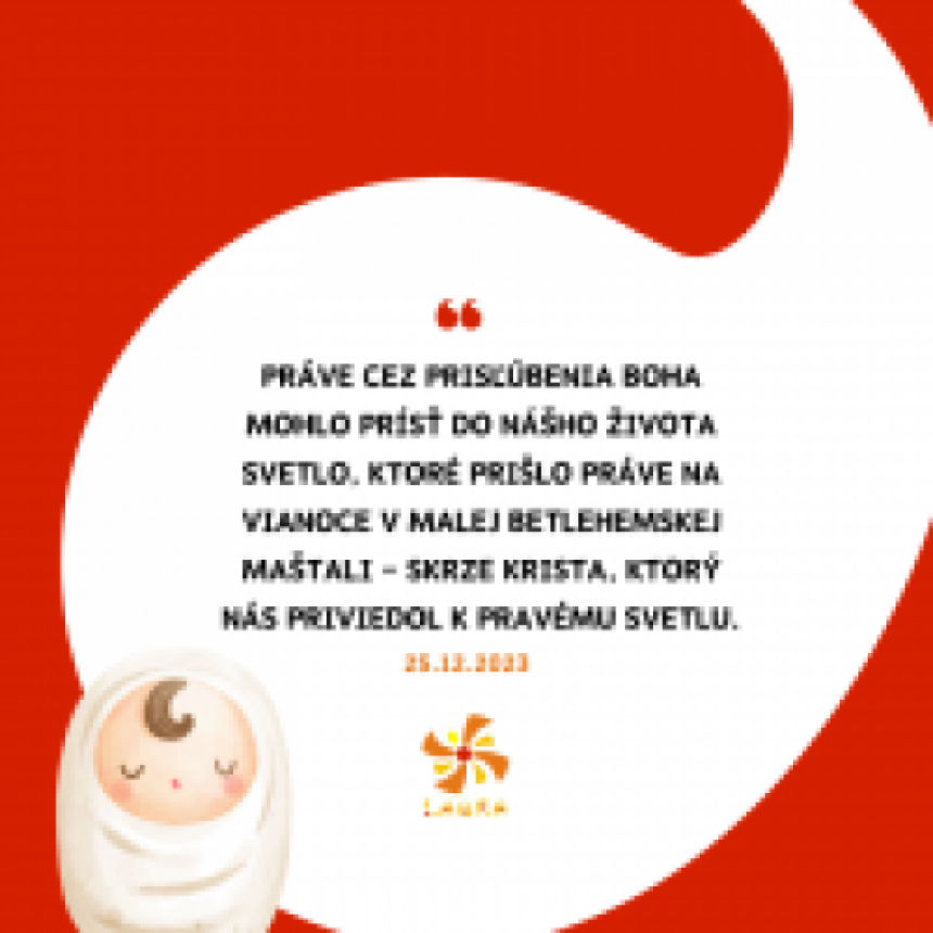 Už na začiatku stvorenia Boh povedal Buď svetlo! Už tento príkaz svedčí o moci jeho rozhodnutia a jeho slov a že jeho rozhodnutia nie sú len plané reči. A to, že nám prisľúbil spasiteľa, nebol len planý poplach. Jeho slová a prisľúbenia majú moc a váhu a budú platiť za akýchkoľvek okolností. Práve cez prisľúbenie Boha mohlo prísť do nášho života svetlo, ktoré prišlo práve na Vianoce v malej Betlehemskej maštali – skrze Krista, ktorý nás priviedol k pravému svetlu. Prišiel k svojim vlastným ako človek k človeku a oni ho odmietli prijať už ako malé dieťa; už ako dieťa sa narodil v malej maštali, kde boli iba zvieratka. Prišiel z vôle Otca, ktorý chce, aby sme sa skrze Krista vrátili k nemu ako pravému zdroju svetla. Každý rok po Slovensku putuje aj plamienok Betlehemského svetla, ktoré prichádza priamo z Betlehema, a prináša radosť do našich príbytkov. Tieto sviatky i ja sa radujem a z úprimného srdca vám vinšujem: Aby bol Kristus Pán vašim tešiteľom, vaším dobrým radcom a dobrým priateľom. Do nového roka vám vinšujem to, však viete čo, aby ste sa dostali tam, však viete kam, aby ste sa radovali s tým, však viete s kým, aby ste mali mnoho toho, však vy dobre viete čoho :)