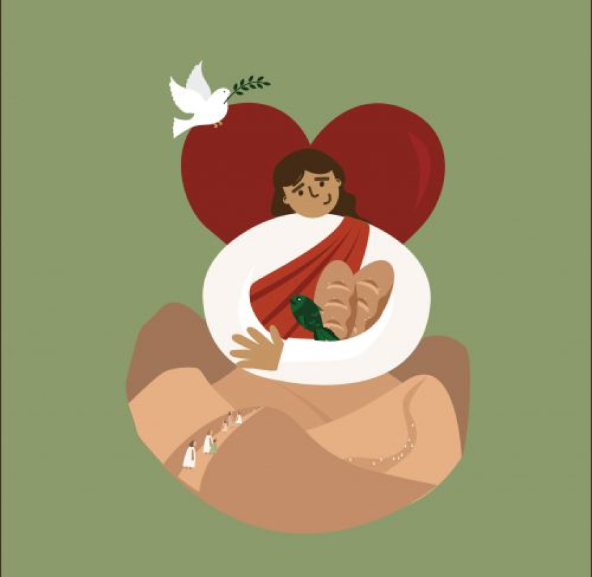 Ježiš sa ich opýtal: "Koľko máte chlebov?" Oni odpovedali: "Sedem a zopár rybiek."