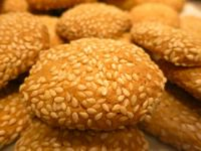 Na strednom plameni nasucho opražíme sezamové semienka do zlatista. Pozor, aby vám neprihoreli, často ich miešajte. Necháme vychladnúť. Z ostatných surovín vymiešame cesto. Cesto je mäkké, a nelepí sa. Potom do neho pridáme polovicu opražených sezamových semienok. Druhú polovicu si necháme na obaľovanie. Trúbu predhrejeme na 180 C. Z cesta rukami robíme malé placky, alebo bochníčky, cca 3-4 cm dlhé. Obalíme ich v zvyšnom sezame. Ak by vám sezam na obaľovanie nestačil, kľudne ho nahraďte kokosom. Placky poukladajte na plech, cca 2-3 cm od seba, trošku narastú. Pečte 20 minút, kým koláčiky zľahka nezhnednú.